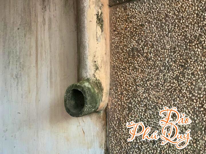 Nước mưa từ mái nhà, được dẫn xuống sân nhà bằng kiểu ống đắp bởi xi măng và ngói như thế này.